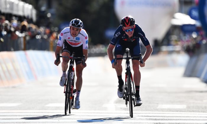 Hindley’s Sunweb teammate, Wilco Kelderman, began Saturday’s shortened mountain stage in the pink jersey, but was left behind as Hindley and Ineos Grenadiers’ Geoghegan Hart fought a ferocious battle on the final climb up Sestriere. It was the British rider who prevailed, sprinting clear to take the stage win and ensure that after 20 days of riding, the two young rivals are locked in a dead heat. Kelderman is in third, but now 1m 32s behind the leading duo.